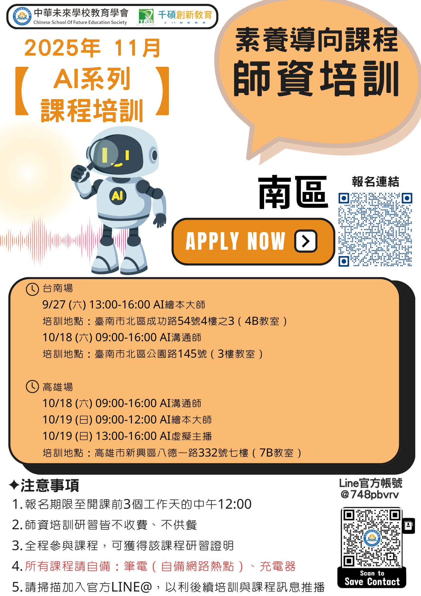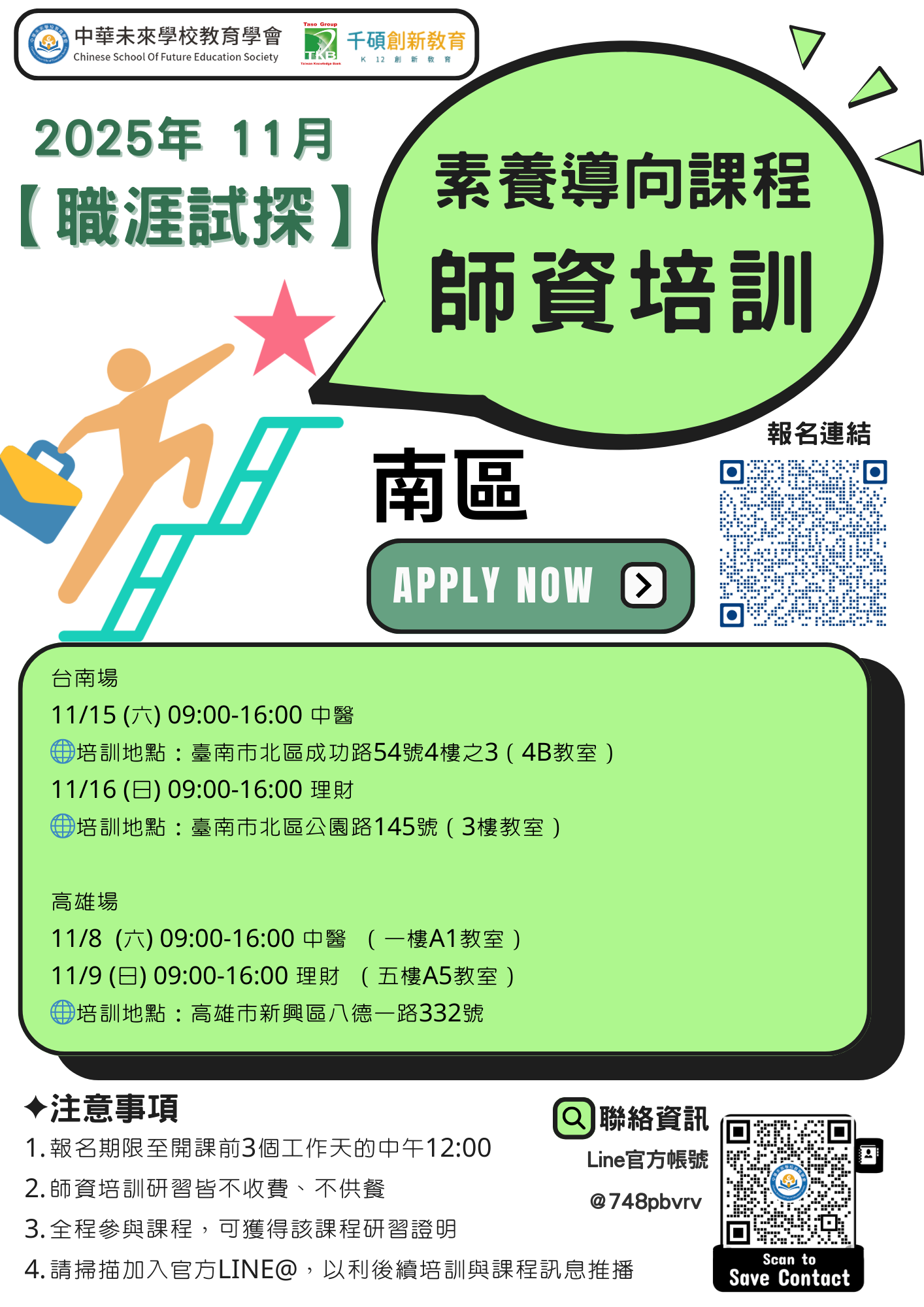 [宣傳]中華未來學校教育學會與千碩教育合作特辦理「教師增能系列研習」,鼓勵教師、師培生踴躍報名參加。